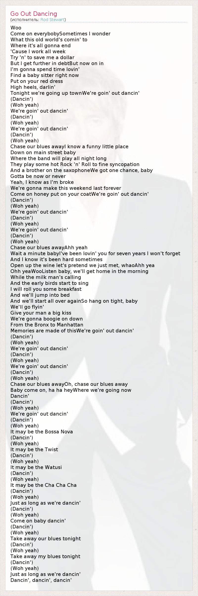 А как ты думаешь, о чем песня "Go Out Dancing" ?