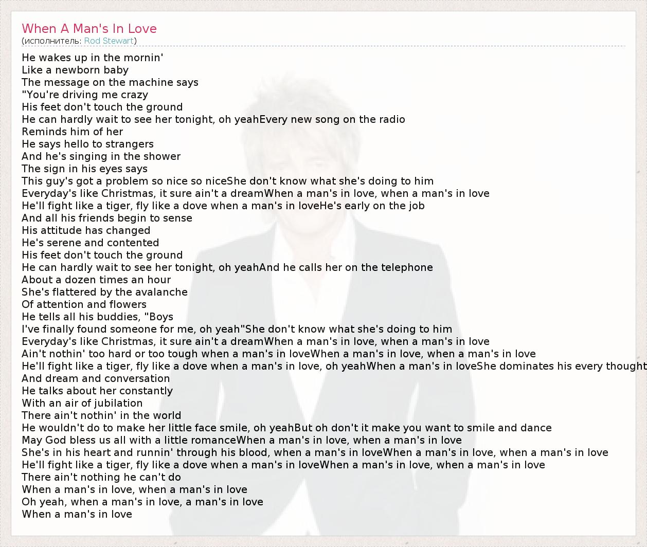А как ты думаешь, о чем песня "When A Man's In Love" ?