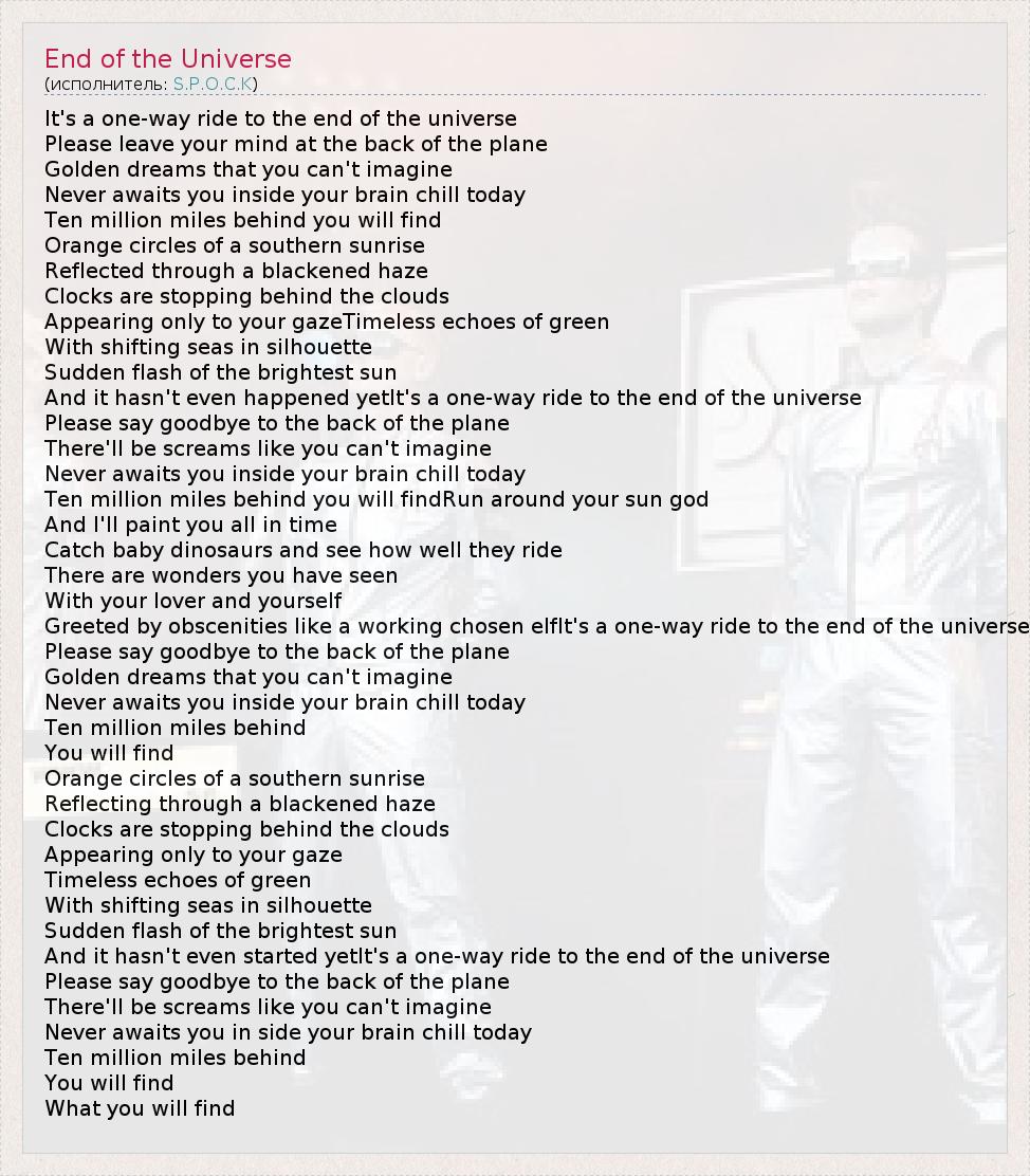 А как ты думаешь, о чем песня "End of the Universe" ?
