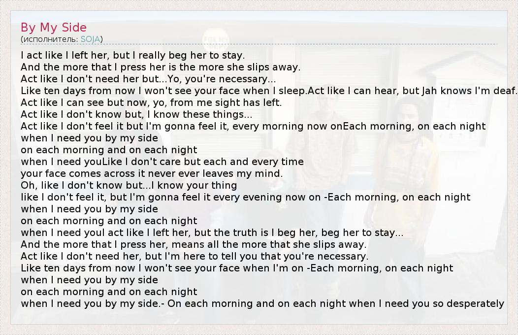 when I need you by my side.- On each morning and on each night when I need you so desperately