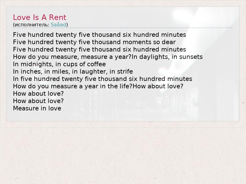 А как ты думаешь, о чем песня "Love Is A Rent" ?