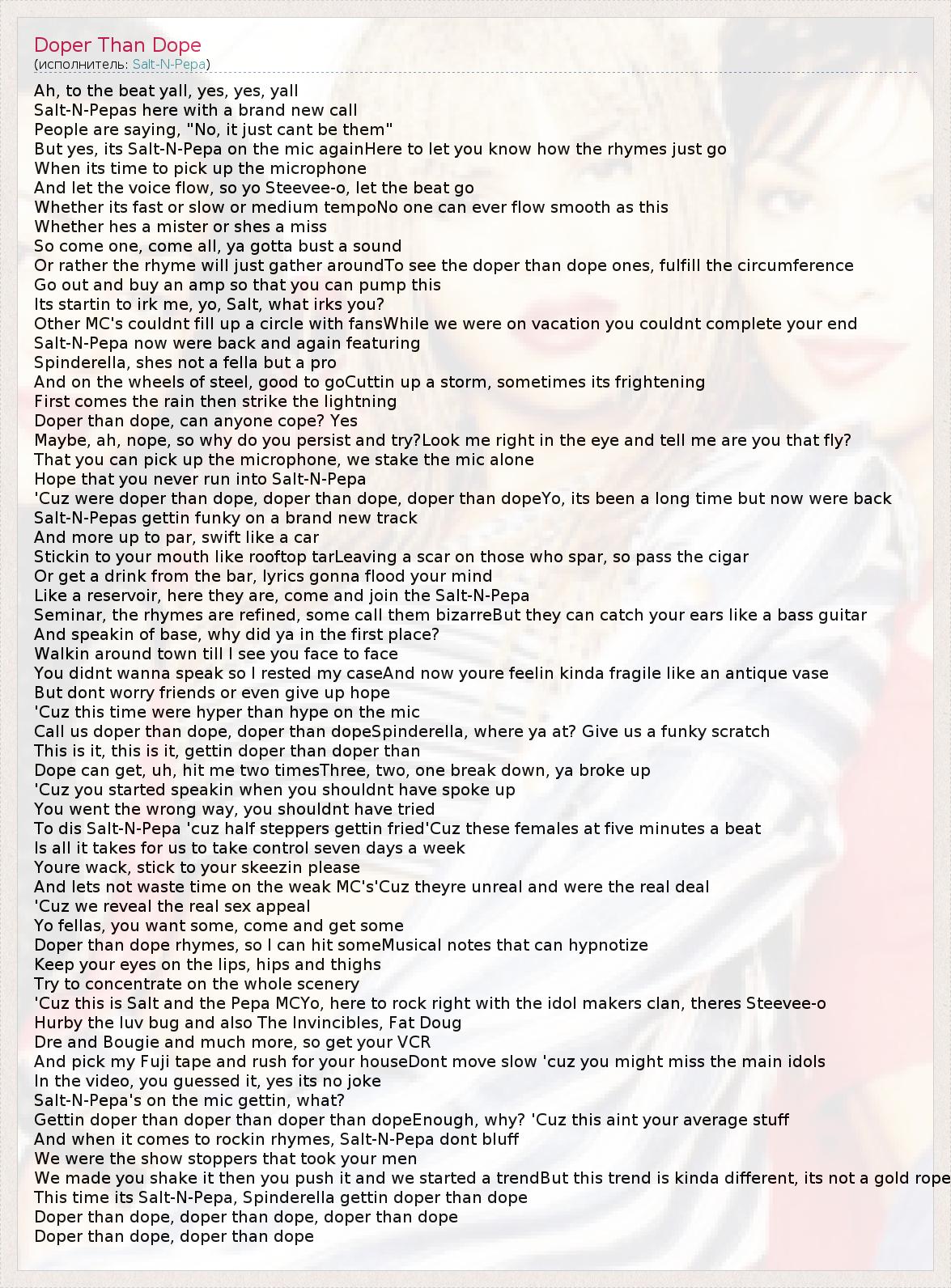 А как ты думаешь, о чем песня "Doper Than Dope" ?