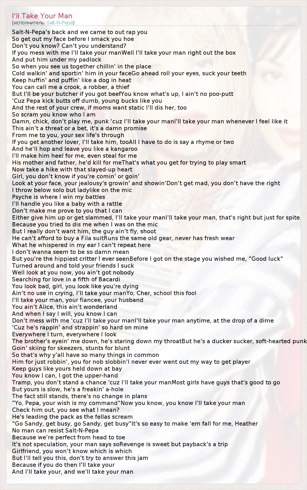 "Yo, Pepa, your wish is my command"Now you know, you know I'll take your man