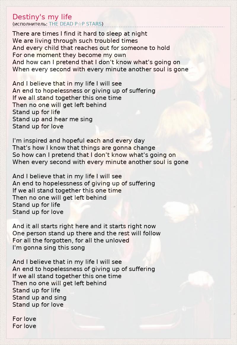 А как ты думаешь, о чем песня "Destiny's my life" ?