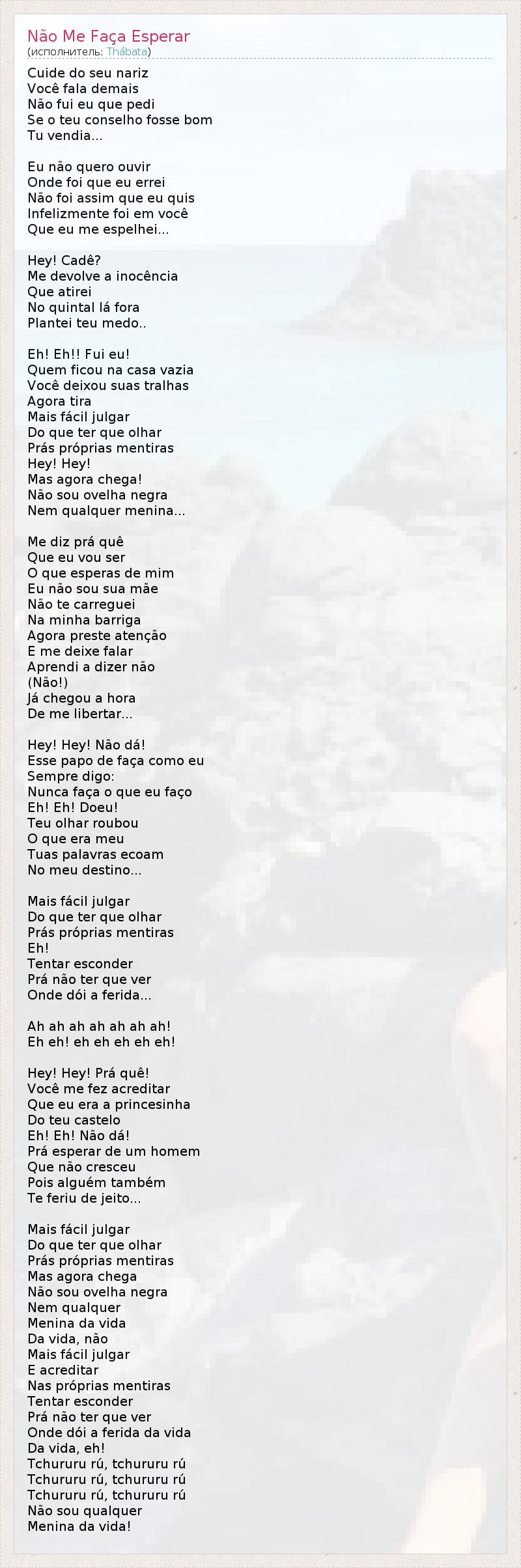 А как ты думаешь, о чем песня "Não Me Faça Esperar" ?