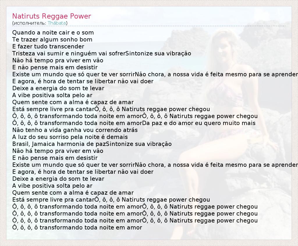 А как ты думаешь, о чем песня "Natiruts Reggae Power" ?