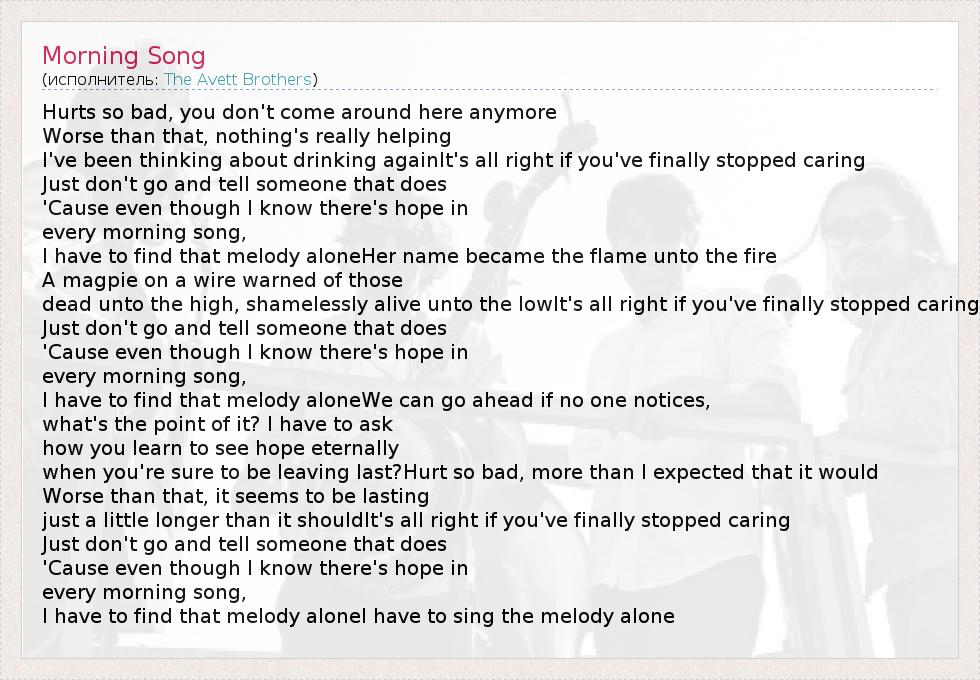 А как ты думаешь, о чем песня "Morning Song" ?
