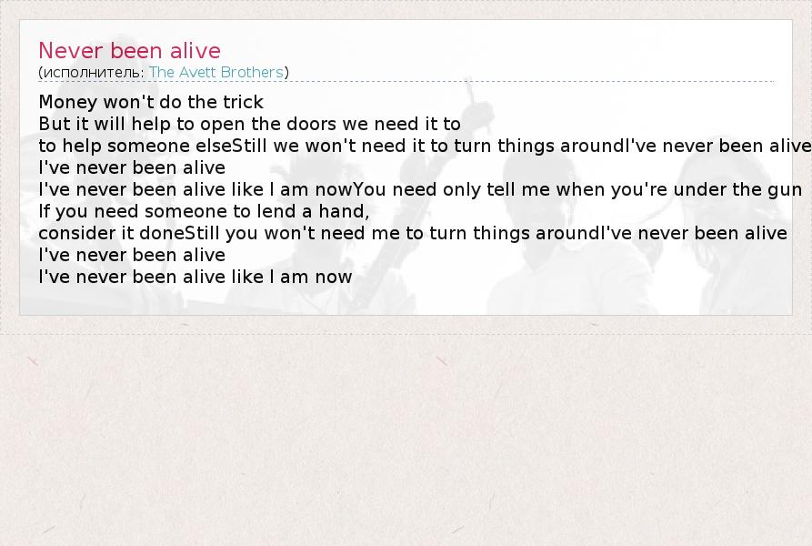 to help someone elseStill we won't need it to turn things aroundI've never been alive