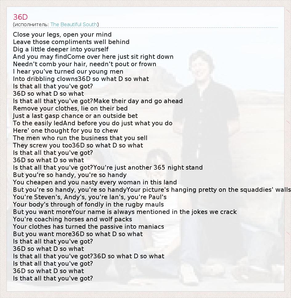 Это интересно:Beautiful South - английская альтернативная поп-рок-группа. Была образована на основе группы HOUSEMARTINS в 1989 в Халле, графство Йоркшир. Состав: вокалист Пол Хитон (Paul Heaton, р. 9 мая 1962, Беркенхед, Мерсисайд), ударник и вокалист Дэвид Хемингуэй (David Hemingway), басист Шон Уэлч (Sean Welch), вокалистка Брайана Корриган (Briana Corrigan), ударник Дэвид Стид (David Stead) и гитарист Дэвид Ротерей (David Rotheray). Популярность группа завоевала... продолжение