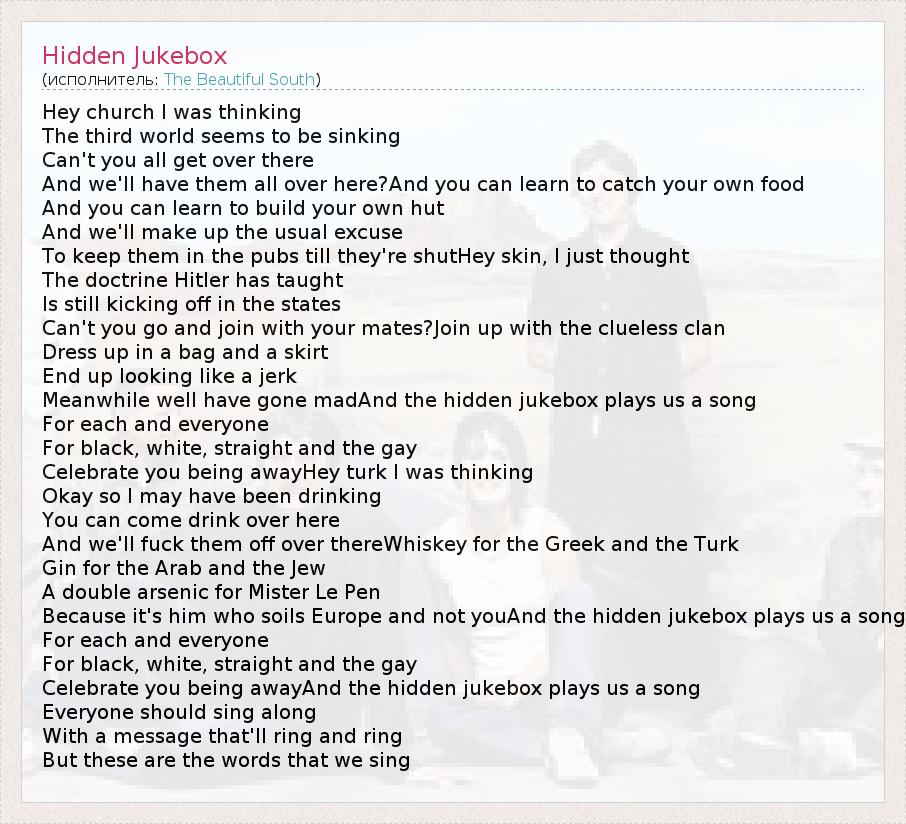 А как ты думаешь, о чем песня "Hidden Jukebox" ?