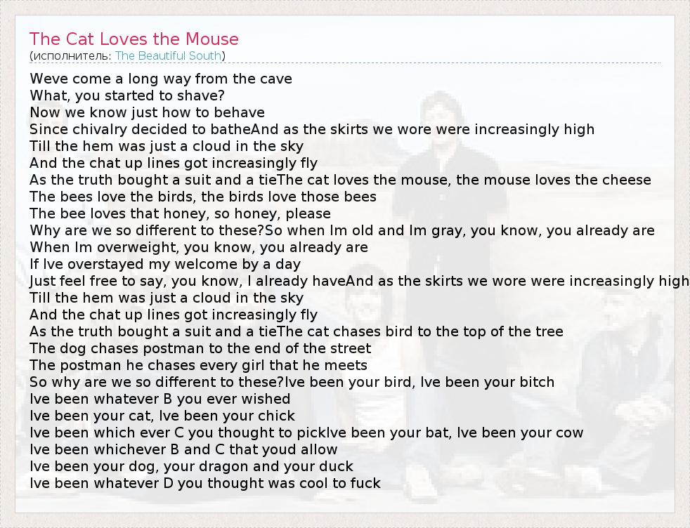 А как ты думаешь, о чем песня "The Cat Loves the Mouse" ?