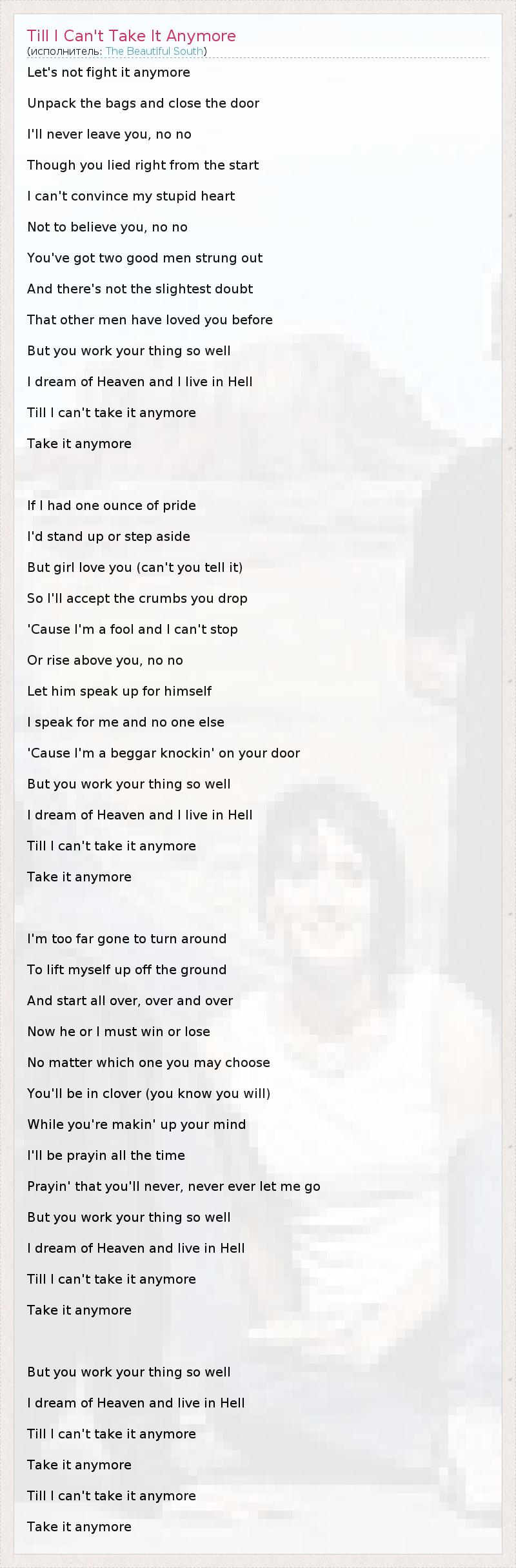 ГлавнаяИсполнителиThe Beautiful SouthTill I Can't Take It Anymore