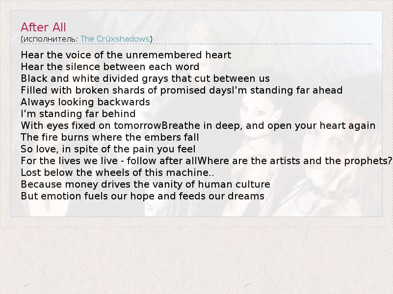 А как ты думаешь, о чем песня "After All" ?