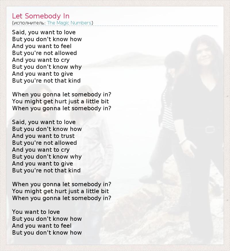 А как ты думаешь, о чем песня "Let Somebody In" ?