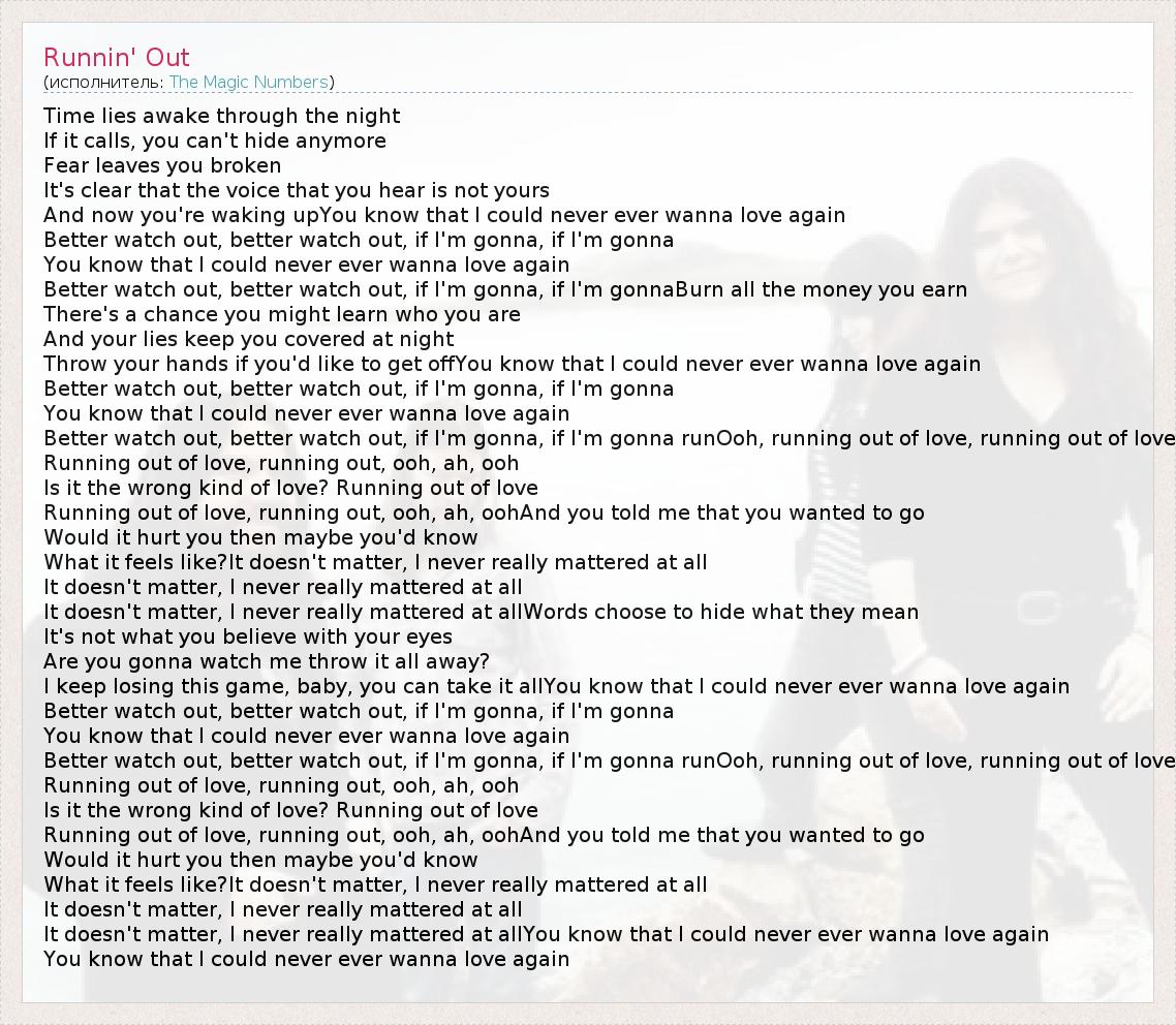 Better watch out, better watch out, if I'm gonna, if I'm gonna runOoh, running out of love, running out of love