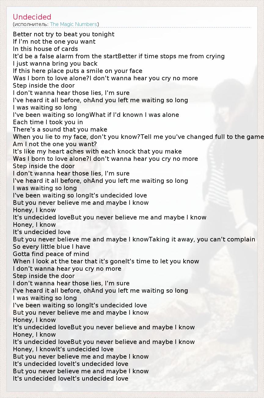 It's undecided loveBut you never believe me and maybe I know