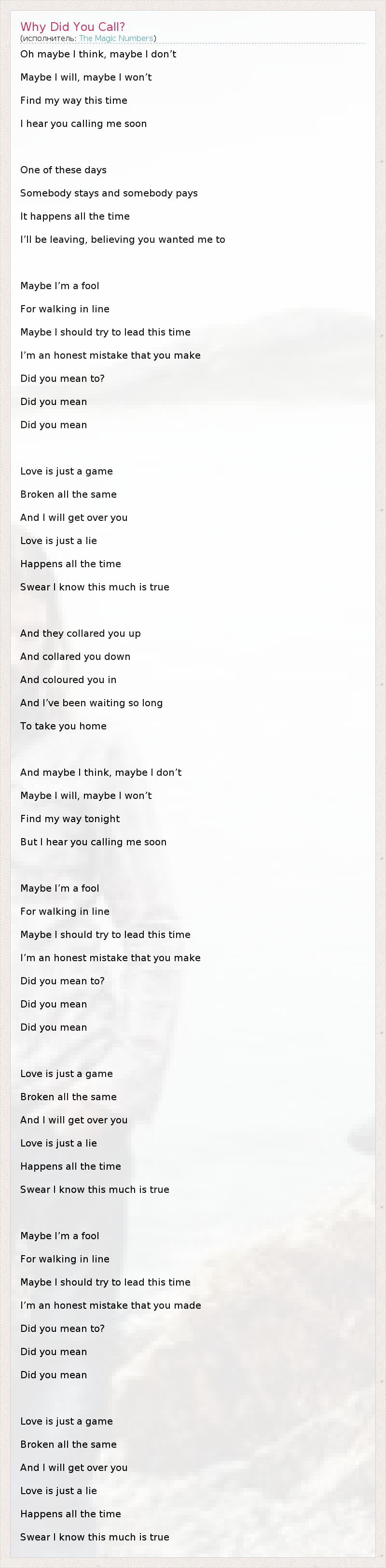 А как ты думаешь, о чем песня "Why Did You Call?" ?