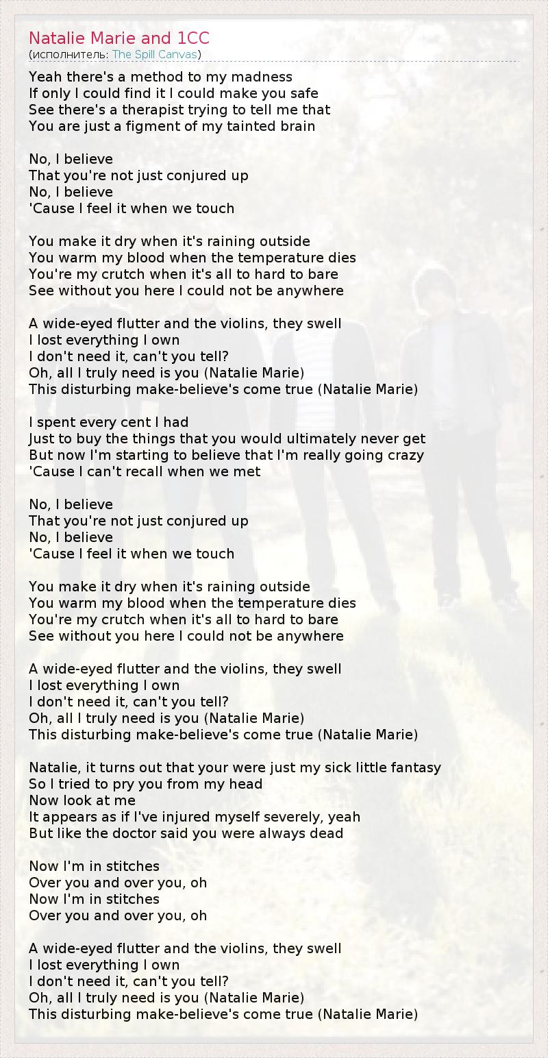 А как ты думаешь, о чем песня "Natalie Marie and 1CC" ?