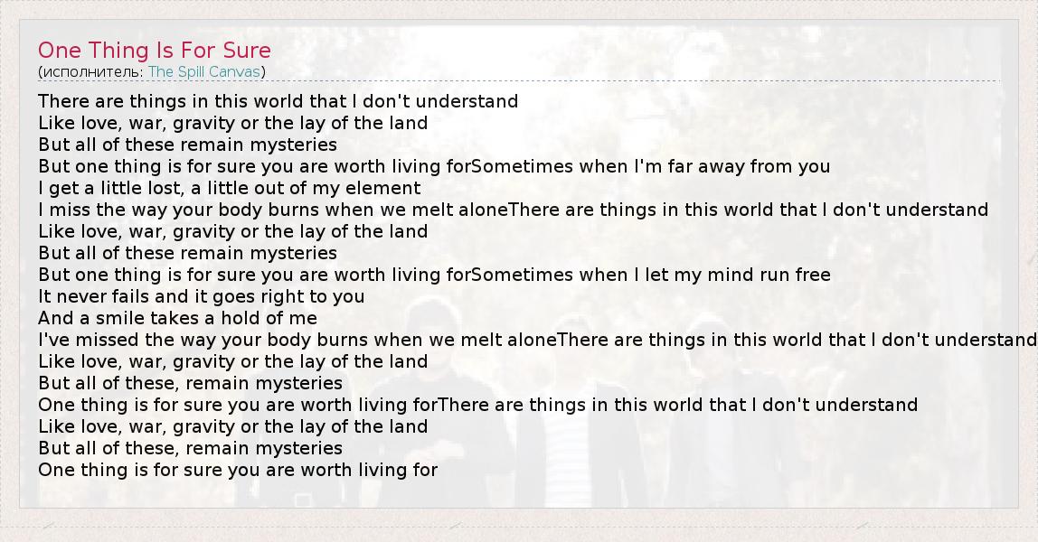 А как ты думаешь, о чем песня "One Thing Is For Sure" ?