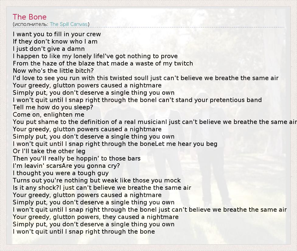 I won't quit until I snap right through the boneI can't stand your pretentious band