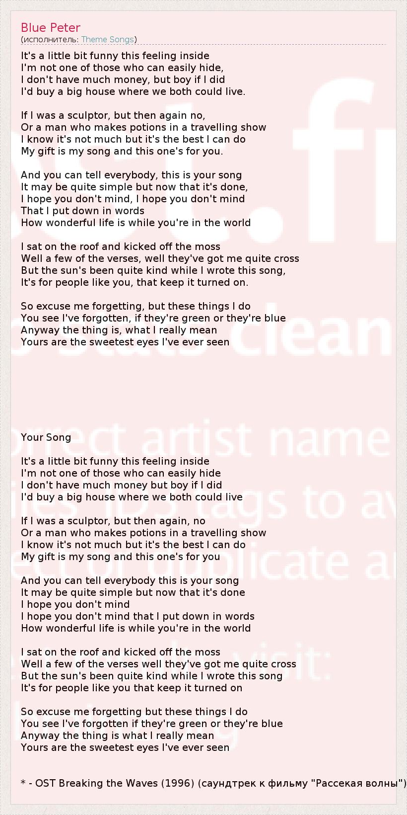 А как ты думаешь, о чем песня "Blue Peter" ?
