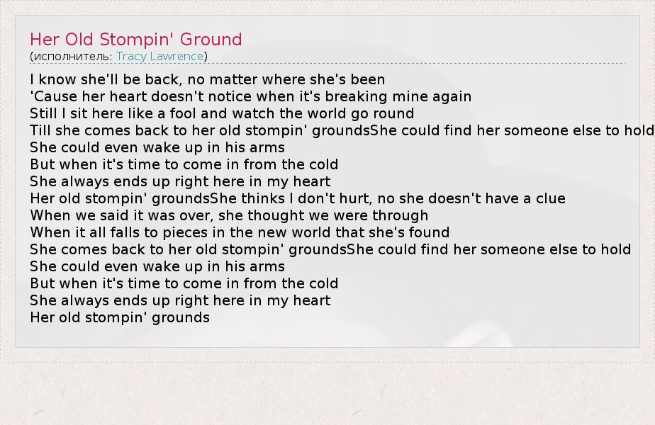 А как ты думаешь, о чем песня "Her Old Stompin' Ground" ?
