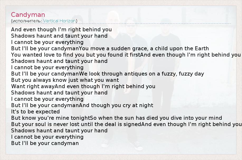 But I'll be your candymanYou move a sudden grace, a child upon the Earth
