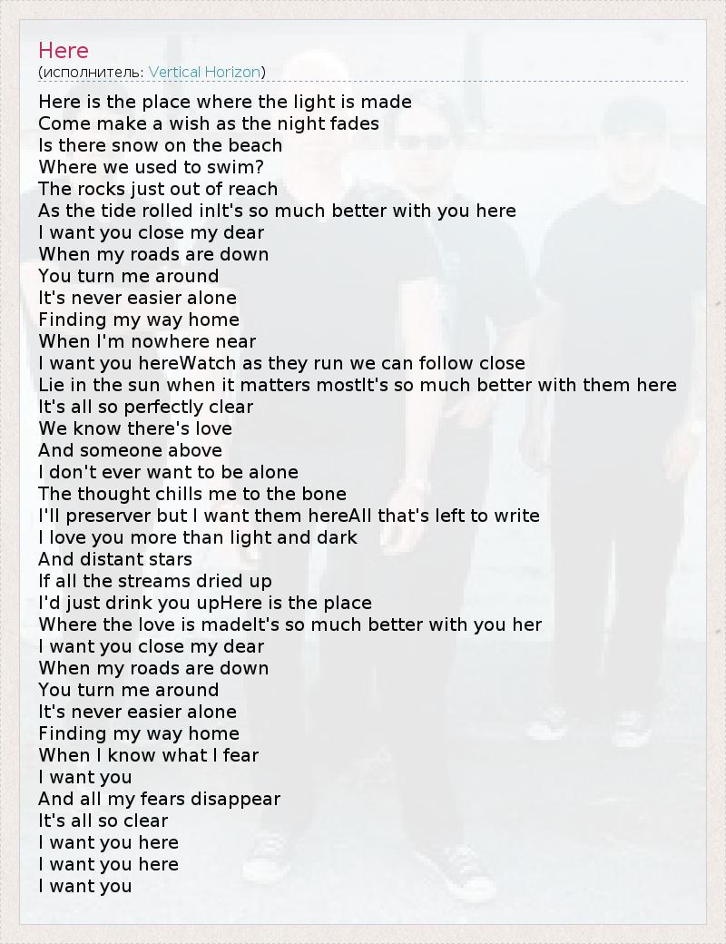 Это интересно:Рок-группа Vertical Horizon была основана в 1990 году студентами Джорджтаунского Университета Метью Сканнеллом и Кейт Кейн; после выпуска в 1991 году дуэт переехал в Бостон и в 1992 году выпустил свой дебютный альбом «There and Back Again».... продолжение