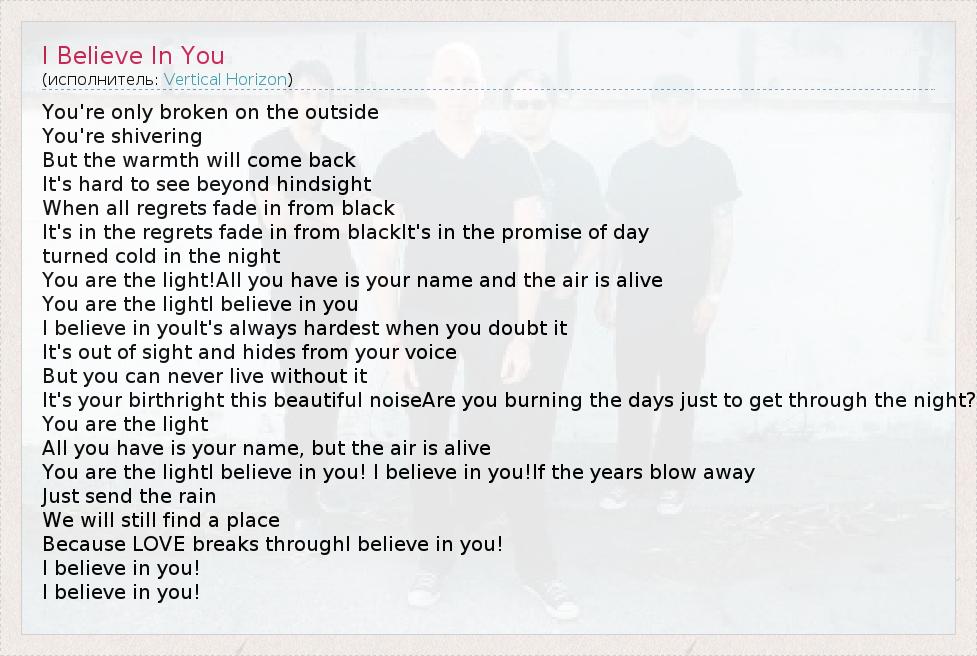 А как ты думаешь, о чем песня "I Believe In You" ?