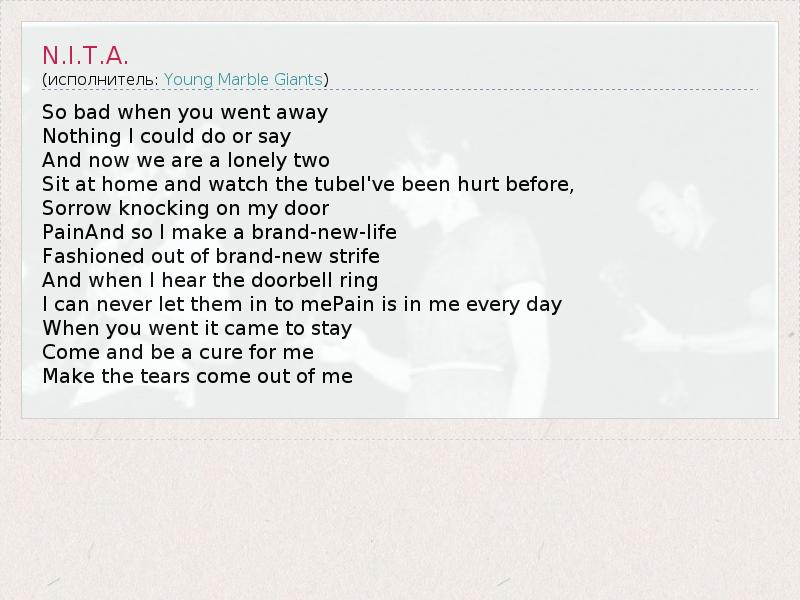 А как ты думаешь, о чем песня "N.I.T.A." ?