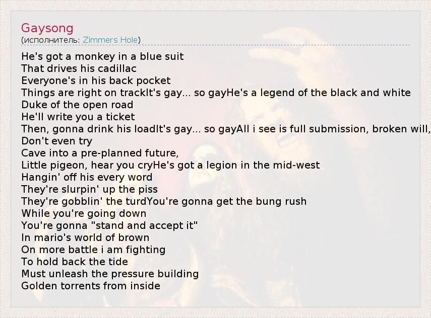 Это интересно:Канадская группа Zimmers Hole, считающаяся сайд-проектом коллектива Strapping Young Lad, образовалась в 1991 году, когда ее основатели, Джед Саймон и Байрон Страуд, еще и не подозревали, что будут работать под началом Девина Таунсенда. Впрочем, поначалу и группы-то никакой не было - так, кружок по интересам, в котором музыканты собирались для того чтобы попьянствовать, да поиграть стёбные песни. Делали... продолжение