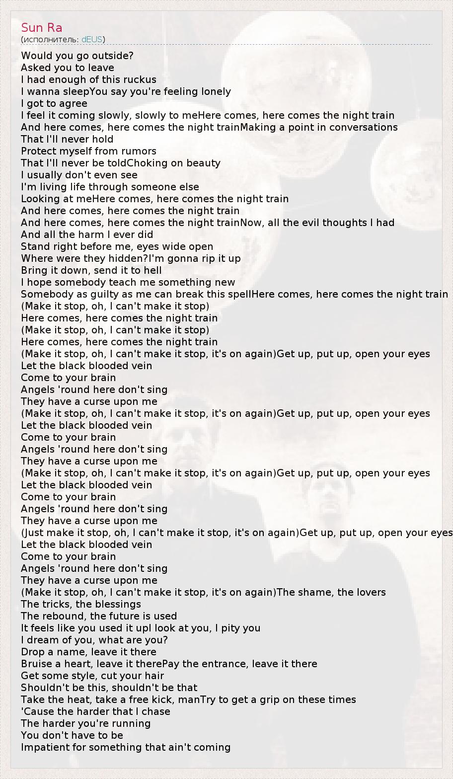And here comes, here comes the night trainNow, all the evil thoughts I had