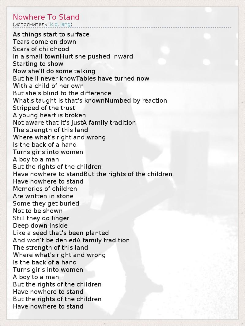 А как ты думаешь, о чем песня "Nowhere To Stand" ?