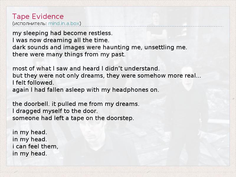 А как ты думаешь, о чем песня "Tape Evidence" ?