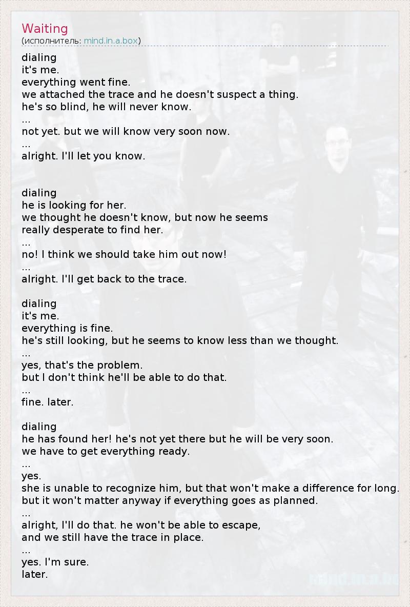 А как ты думаешь, о чем песня "Waiting" ?