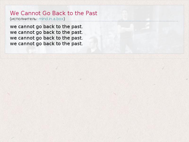 А как ты думаешь, о чем песня "We Cannot Go Back to the Past" ?