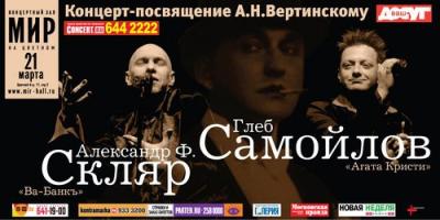 На почве любви к наследию Александра Вертинского Глеб Самойлов («Агата Кристи») и Александр Ф. Скляр («Ва-Банкъ»), по идее, должны были сойтись уж давно. Ещё в начале 90-х Самойлов творил безысходные, но изысканно красивые сюжетные романсы («Декаданс», «Мотоциклетка») по модели «странных песенок» Вертинского – где трагичность подачи сочеталась с тончайшей издёвкой над непроходимой... продолжение