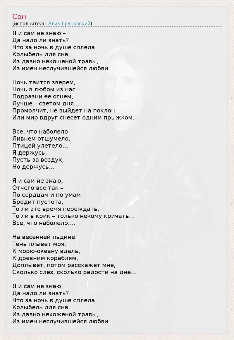 А как ты думаешь, о чем песня "Сон" ?