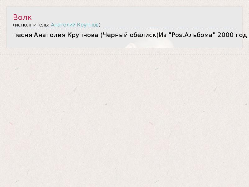 песня Анатолия Крупнова (Черный обелиск)Из "PostАльбома" 2000 год