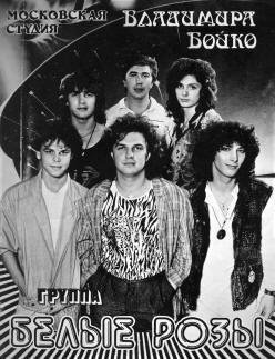 Группа "Белые розы" организована в 1989 году, входила в состав студии "Ласковый май" под управлением Андрея Разина. Её музыкальный руководитель, композитор, аранжировщик, звукорежиссёр и продюсер Владимир Бойко. Большинство песен в 1989 году исполнил Алексей Лобанов. Состав группы на 2004 год: Сергей Пугачёв, Яна Бойко, Владимир Бойко (младший).Дискография1. "Белые розы" - 19892. "Город любви" - 19893. "Ласковый май" (Песни 1989 года) - 20014. "Золотой альбом" (New Version) - 2004