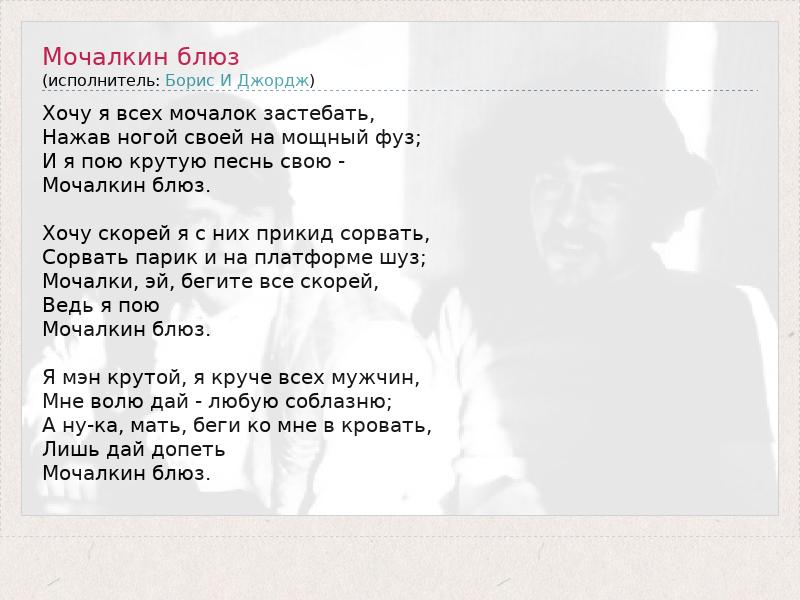 А как ты думаешь, о чем песня "Мочалкин блюз" ?