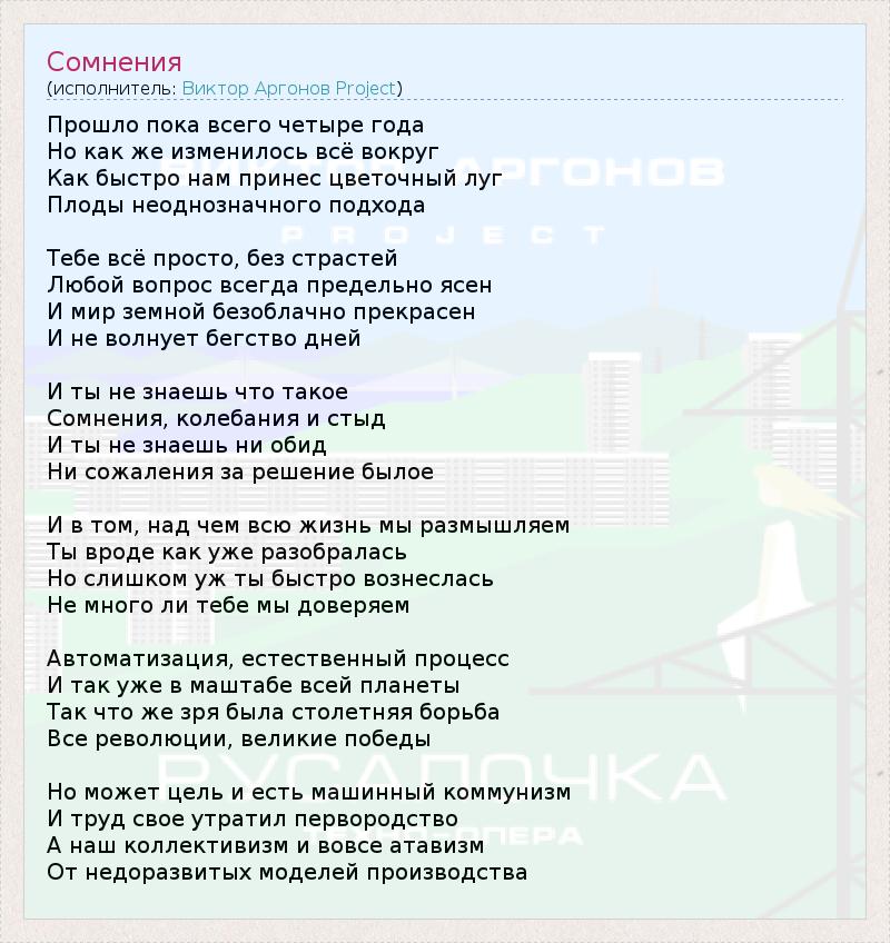 А как ты думаешь, о чем песня "Сомнения" ?