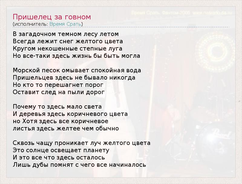 А как ты думаешь, о чем песня "Пришелец за говном" ?