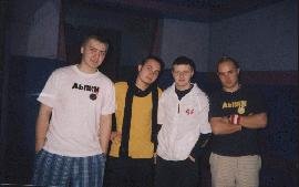 Музыкальный стильпанкМузыкальные предпочтенияGREEN DAY, Blink-182, SUM-41, OFFSPRING, R.H.C.P, Тараканы, НАИВ, КИРПИЧИ, Элизиум, Дергать, и т. д.Музыканты, близкие по творческим взглядамТаких очень многоИстория созданияГруппа создана весной 2003 г. Димой К. (вокал) и Гришей К. (гитара, бэк-вокал). Летом группа пополнилась Васей К. (бас) и Диманом Н. (барабаны). Осенью записано 4 трека,... продолжение