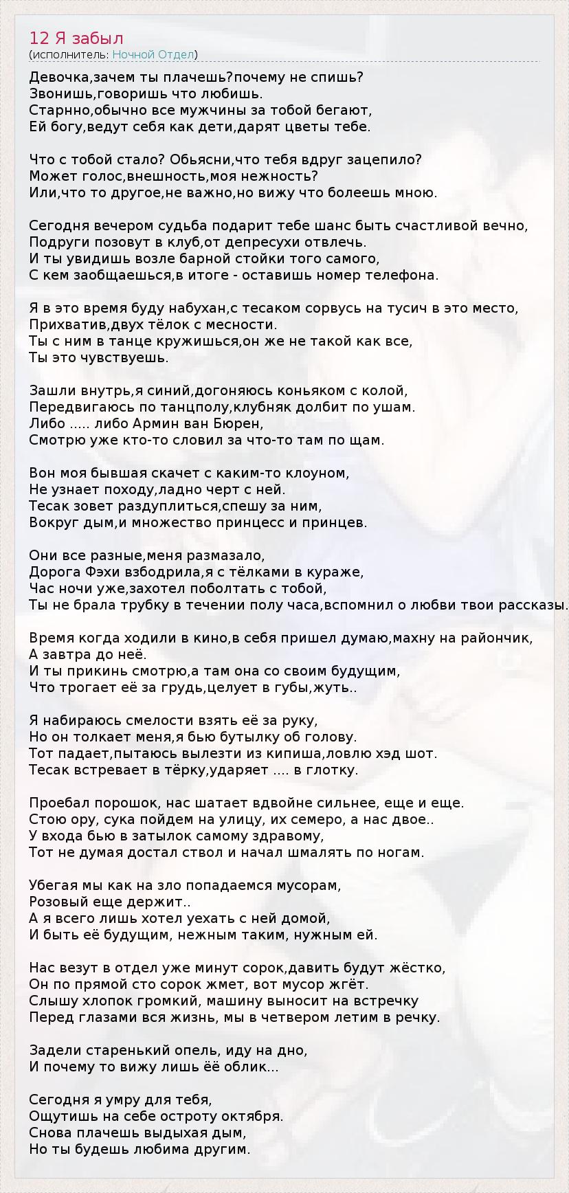 А как ты думаешь, о чем песня "12 Я забыл" ?