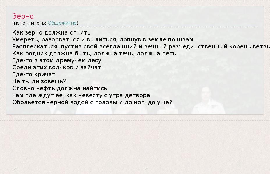 А как ты думаешь, о чем песня "Зерно" ?