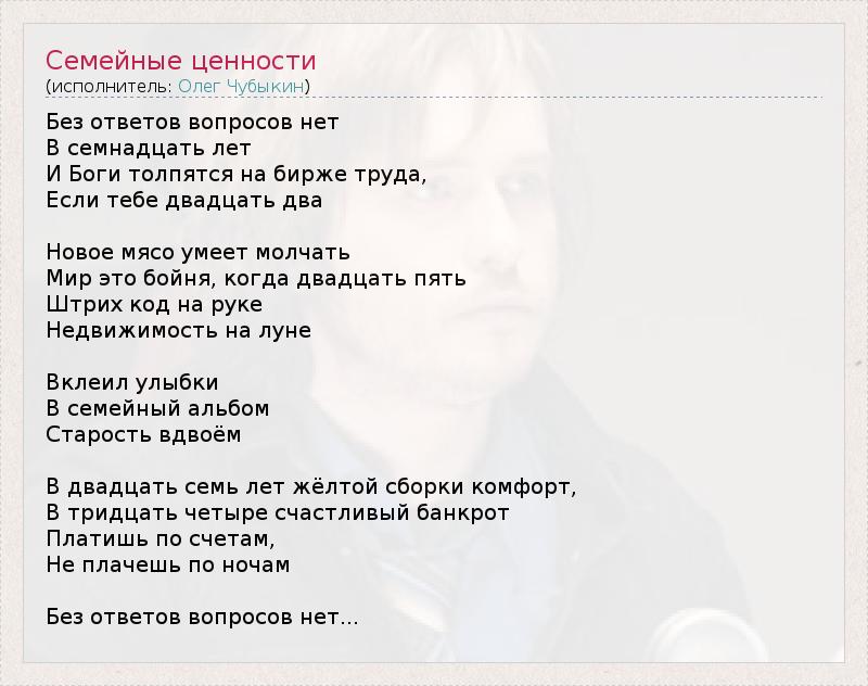А как ты думаешь, о чем песня "Семейные ценности" ?