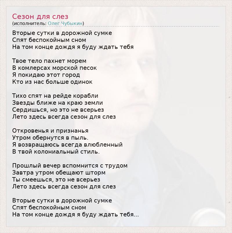 А как ты думаешь, о чем песня "Сезон для слез" ?