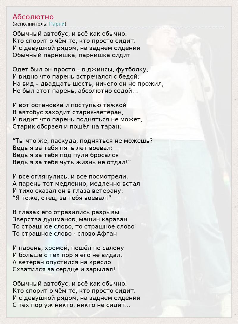 А как ты думаешь, о чем песня "Абсолютно" ?