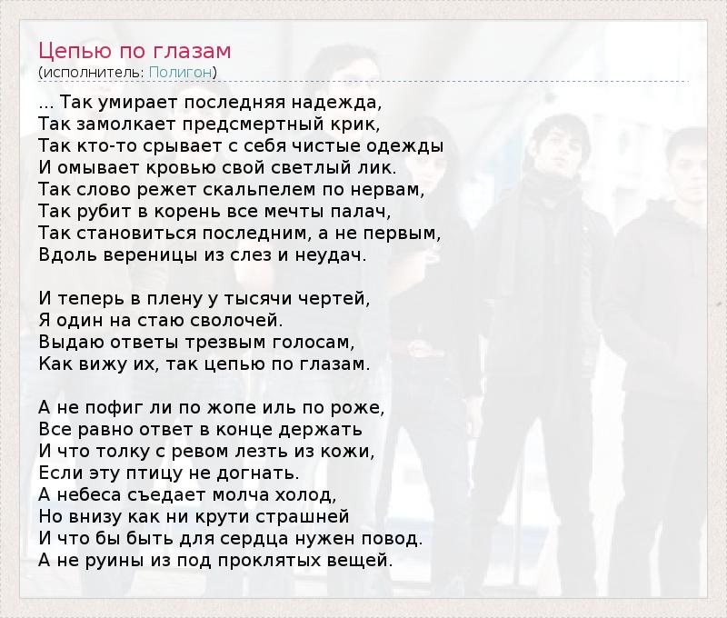 ГлавнаяИсполнителиПолигонЦепью по глазам